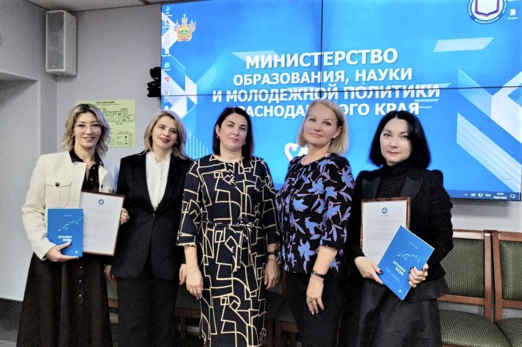 В рамках стартовой встречи благодарности за активную работу по реализации бережливых проектов в образовании Краснодарского края в 2023 году от заместителя гендиректора по развитию ПС ГК «Росатом» Сергея Обозова вручили старшему руководителю АНО «РЦК» Людмиле Горнушкиной и начальнику отдела организационной работы и делопроизводства министерства образования науки и молодежной политики Краснодарского края Анне Тюряевой.