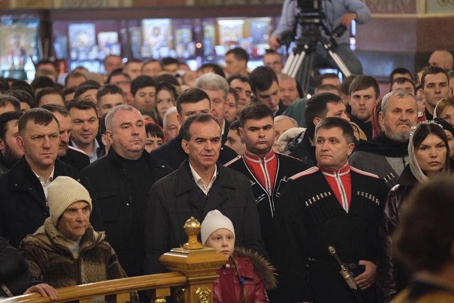 Фото: пресс-служба администрации Краснодарского края Глава региона принял участие в богослужении в Свято-Екатерининском кафедральном соборе.