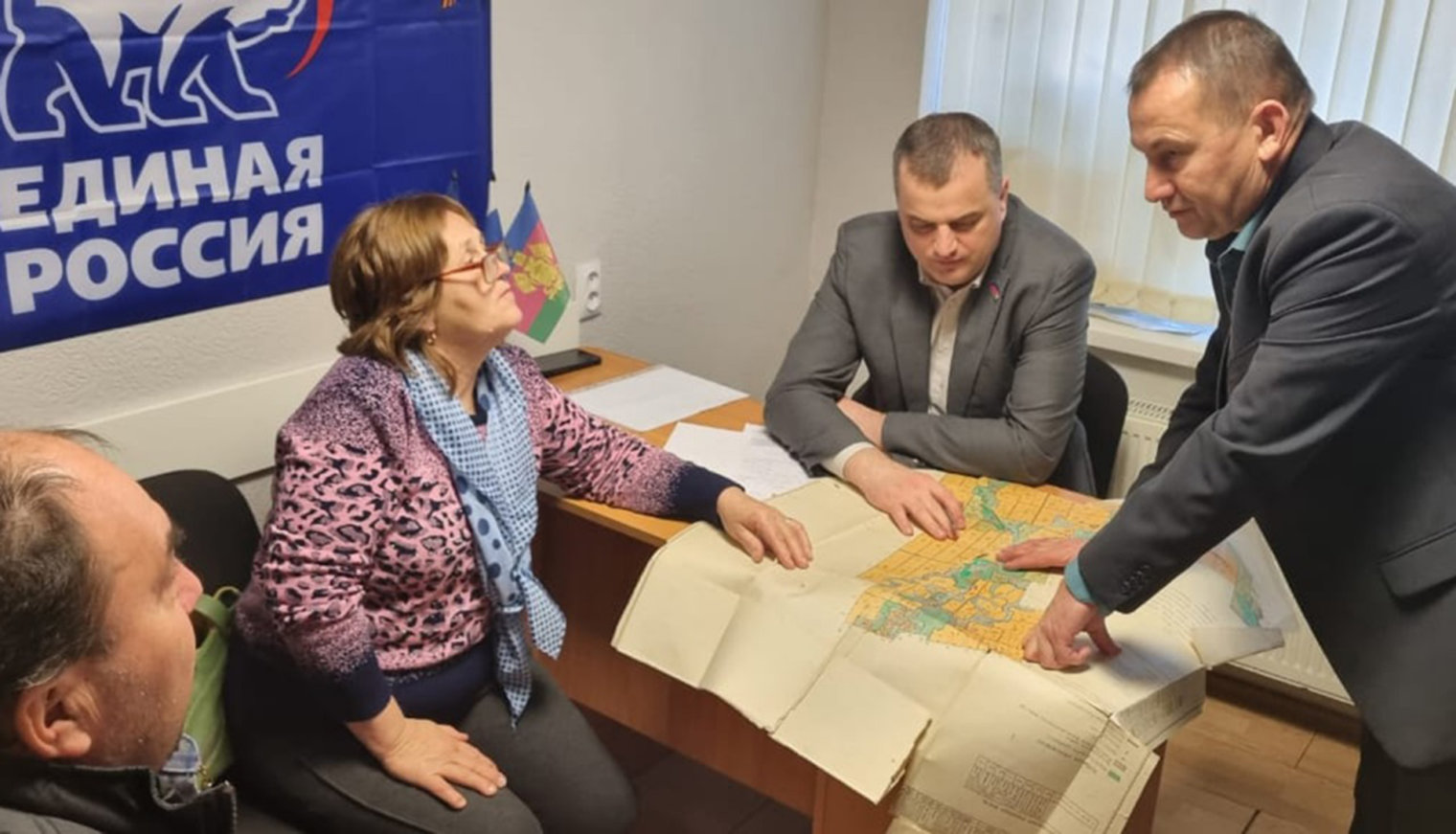 За юридической помощью обратилась к Алексею Косачу группа жителей Школьненского поселения. Вместе с главой сельской администрации Владимиром Попковым селяне рассказали о сокращении пастбищ из-за оформления в собственность ранее выданных паёв. Выделив свои участки на месте пастбищ, собственники используют их для выращивания сельхозкультур, в результате сокращая площади для выпаса скота. Депутат подчеркнул, что этот вопрос находится в компетенции суда, и объяснил возможный механизм его решения. Для представления и защиты их интересов парламентарий посоветовал жителям заручиться помощью юриста.