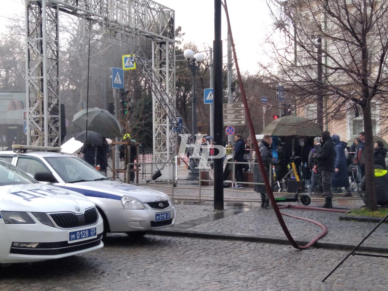 Сегодня в Новороссийске снимали кино. Ливень «делали» пожарные машины