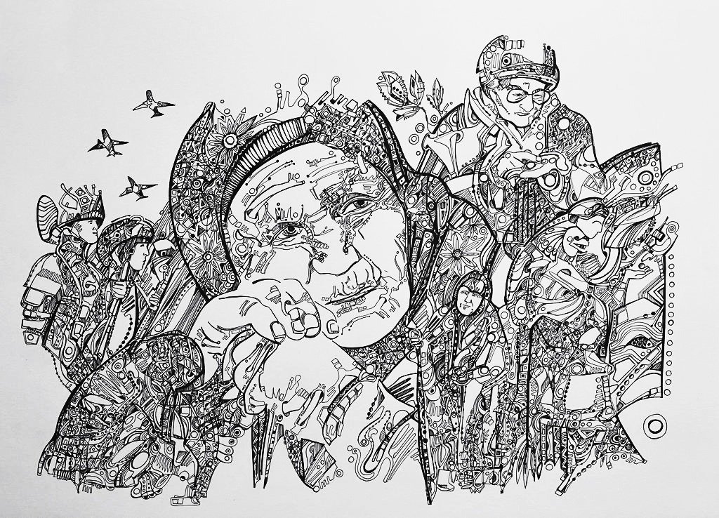 Все работы проекта «За Родину» выполнены в особой оригинальной технике «модульной орнаментации», разработанной автором почти два десятилетия назад.