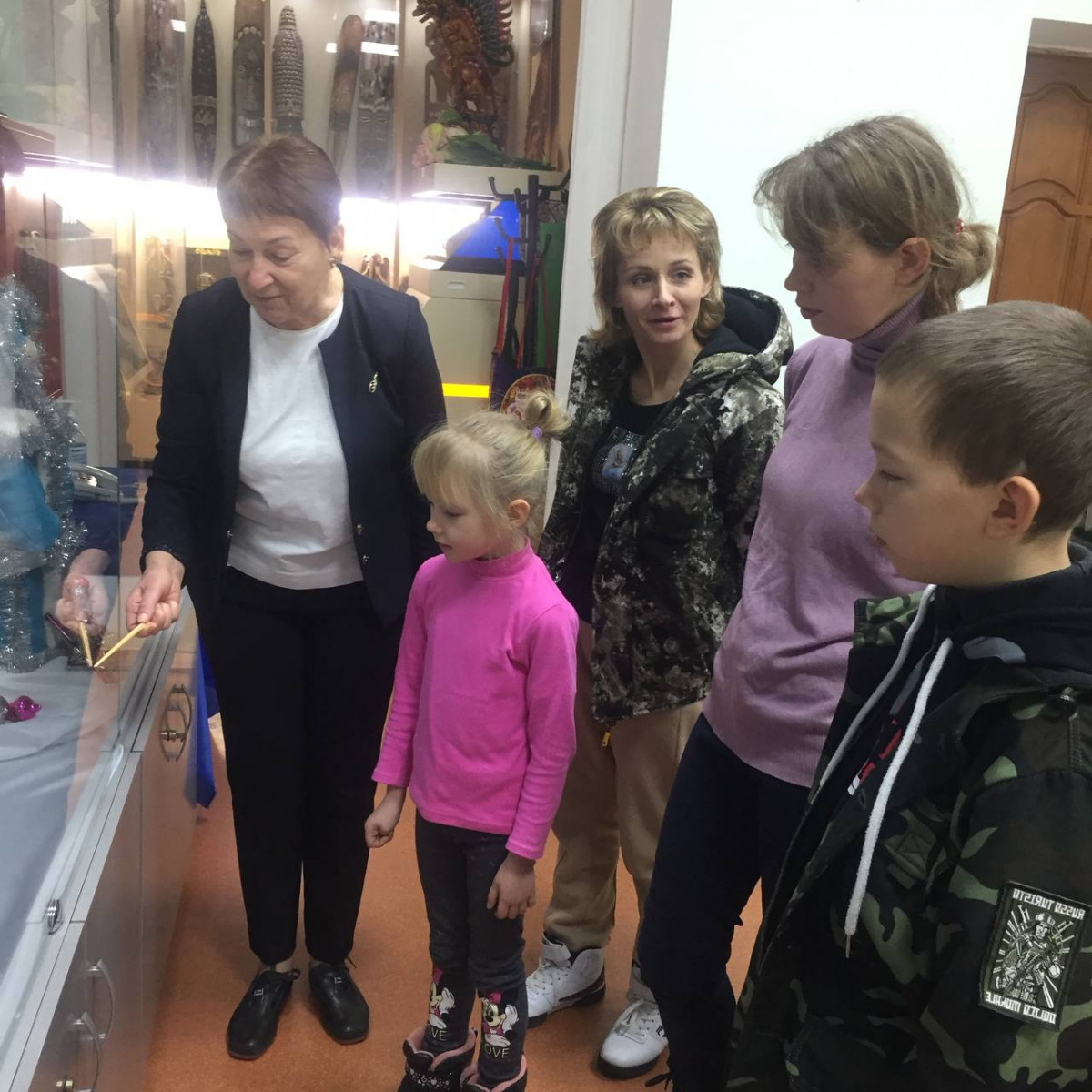 Вика и Максим с интересом послушали рассказ об истории новогодних игрушек, узнали о жизни кубанских казаков. Задержались в зале с экспозицией, посвященной Великой Отечественной войне — было понятно, что снарядами и военным оружием детей не удивить.