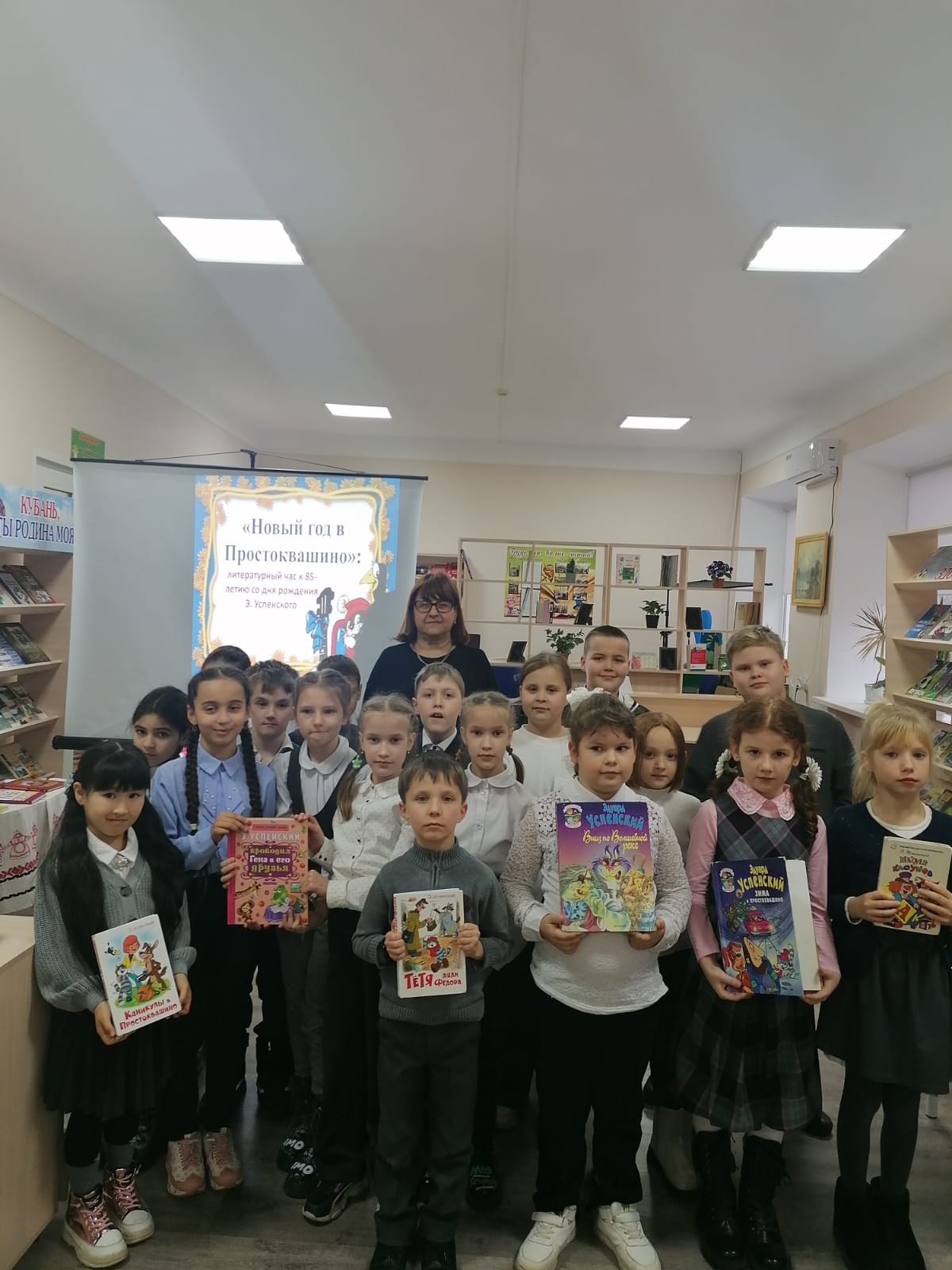 В городской центральной детской библиотеке для учащихся 2 «В» класса гимназии №2 имени И.С. Колесникова прошел литературный час «Новый год в Простоквашино», посвященный юбилею знаменитого писателя – Эдуарда Успенского.
