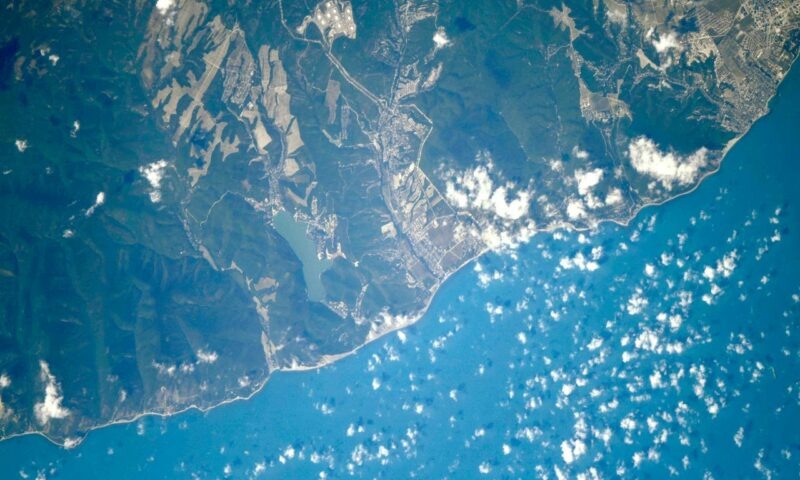 На фотографии отчётливо видно озеро, окружённое горами, а также Чёрное море и Новороссийск. Снимок опубликовал космонавт Олег Артемьев в своих соцсетях.