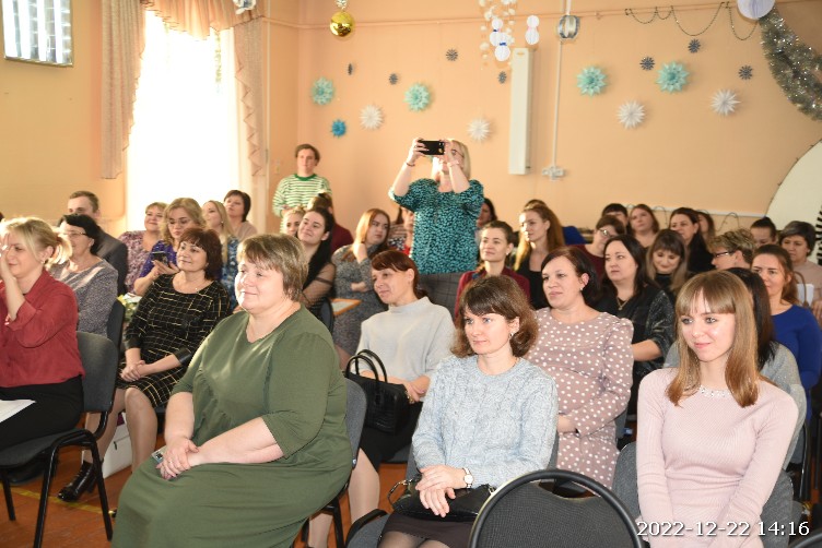 Елена Стороженко поблагодарила за помощь и участие профсоюзный комитет и вручила цветы председателю профкома Надежде Чуб. Всех педагогов поздравили с Новым годом и Рождеством и пожелали здоровья, успехов в работе и мирного неба.