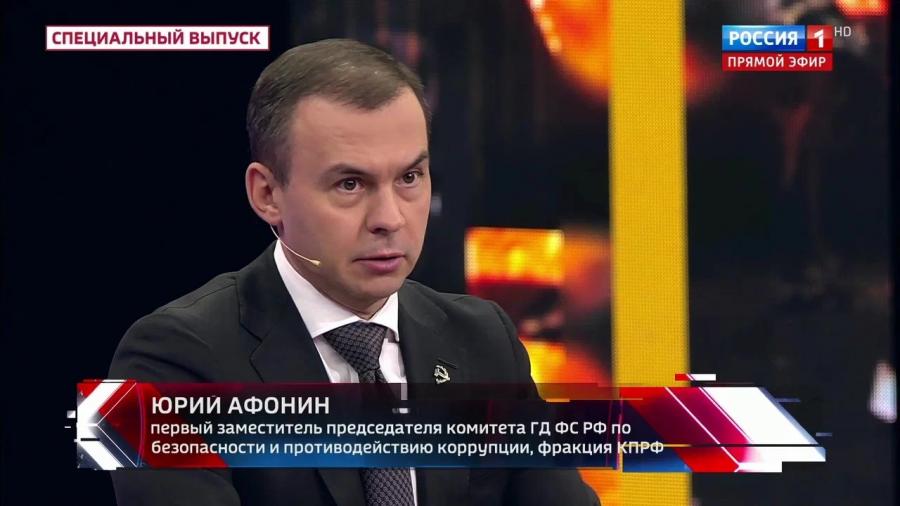Первый заместитель Председателя Центрального Комитета КПРФ Ю.В. Афонин принял участие в программе «60 минут» на телеканале «Россия-1».