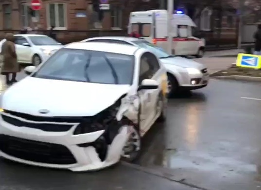 Вечером 17 февраля на перекрестке улиц Пашковской и Леваневского столкнулись автомобили службы такси «Лада» и «Киа». В результате удара водитель отечественного автомобиля потерял управление. Машина снесла светофор, выехала на тротуар и врезалась в административное здание.