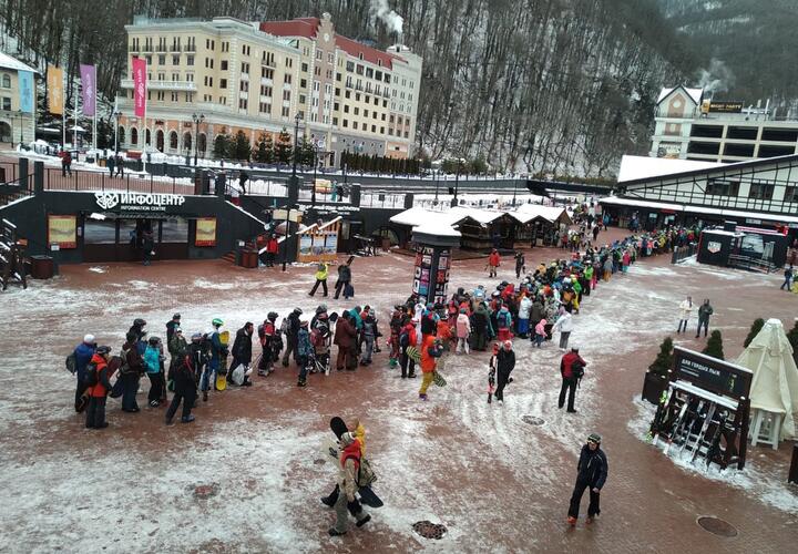 На горнолыжном курорте в Сочи туристы устроили потасовку, ожидая очереди на подъемник.