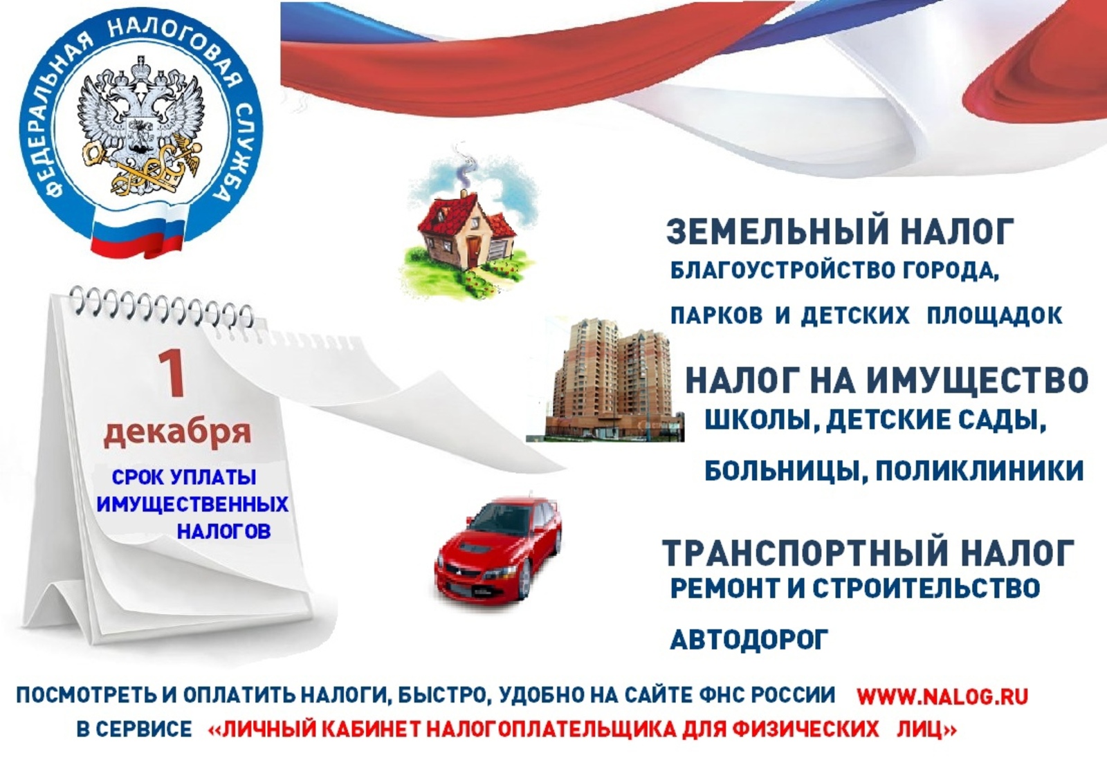 Межрайонная ИФНС России №14 по Краснодарскому краю напоминает, 1 декабря – единый срок уплаты имущественных налогов (транспортный, земельный, налог на имущество).