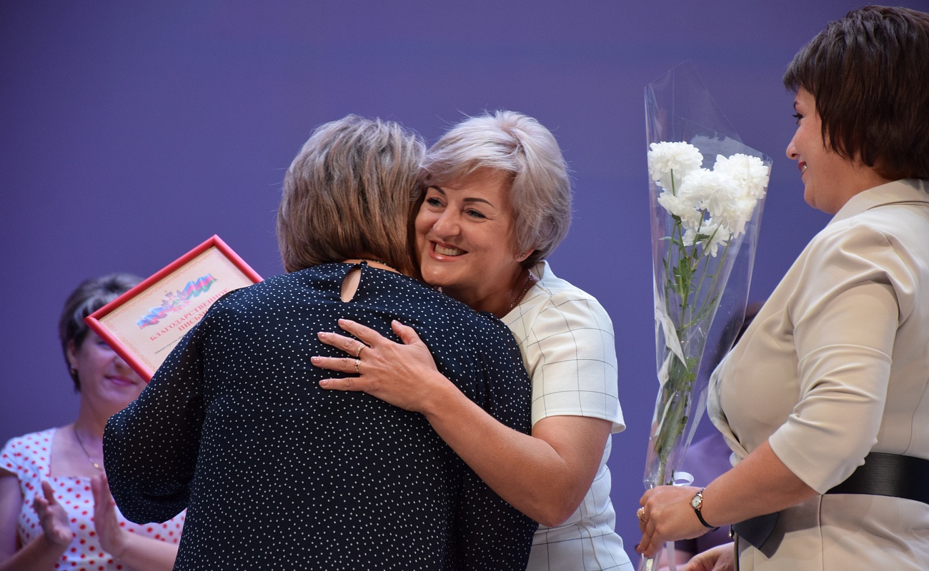 Замглавы Ирина Ищенко и начальник управления образования Марина Журавлева вручили работникам образования федеральные, краевые и муниципальные награды.
