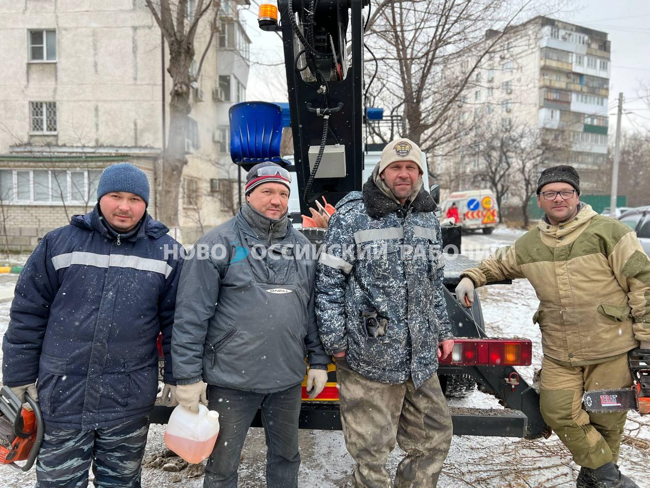 Деревья в Новороссийске не выдерживают норд-оста и падают, а люди на ветру держатся, работают