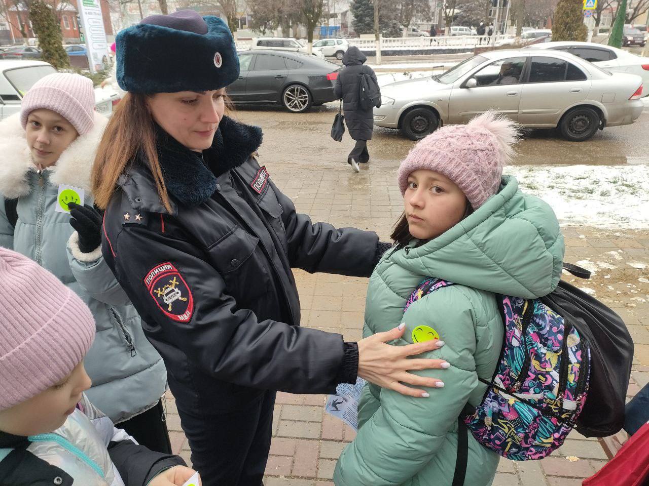 Сотрудники Госавтоинспекции и активисты вышли на центральную улицу станицы Каневской, чтобы напомнить всем участникам дорожного движения о неукоснительном соблюдении правил дорожного движения, особенно в зимний период.