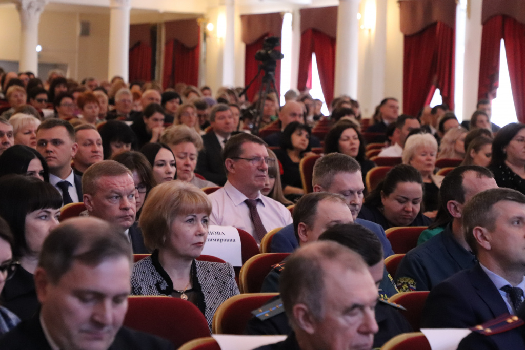С основным докладом выступил глава Динского района Евгений Пергун. В своем выступлении он рассказал о социально-экономическом развитии муниципального образования в 2023 году, подробно остановился на вопросах бюджетной, экономической и инвестиционной политики, выполнении национальных и региональных проектов по улучшению качества жизни населения, строительстве и капитальном ремонте социальных объектов, дорог и тротуаров, одновременно он поделился планами на ближайшие годы.