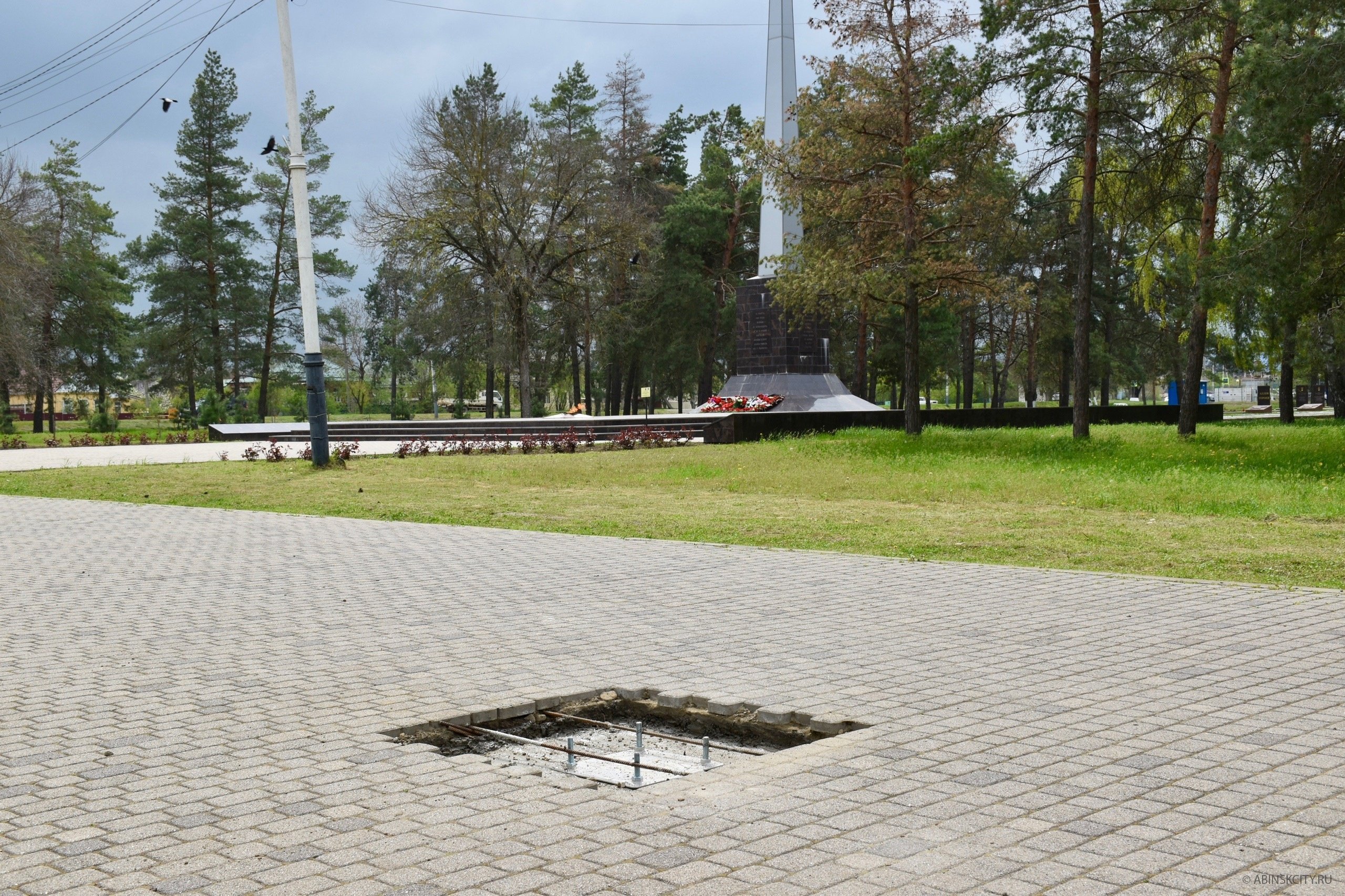 По поручению главы Абинского района Ильи Валентиновича Биушкина в Абинске в парке 30-летия Победы начались работы по установке флагштока для размещения Государственного флага Российской Федерации и Знамени Победы.