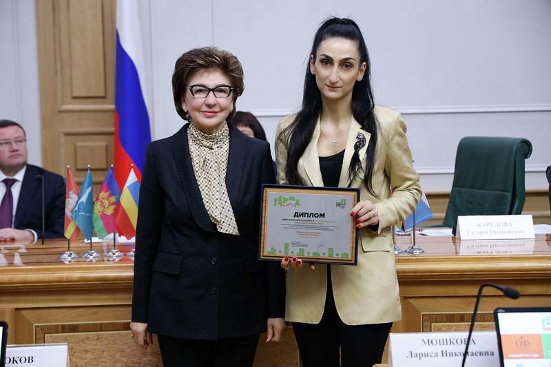 Награду начальнику управления по делам молодежи администрации Геленджика Елене Константиновой вручила первый заместитель председателя Комитета Совета Федерации Галина Карелова.