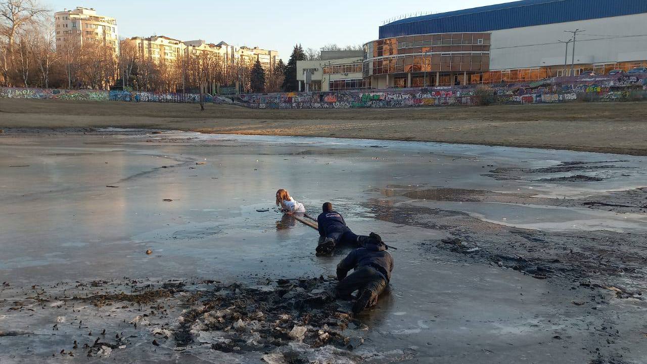 Краснодарские спасатели достали девушку-подростка из ледяной полыньи
