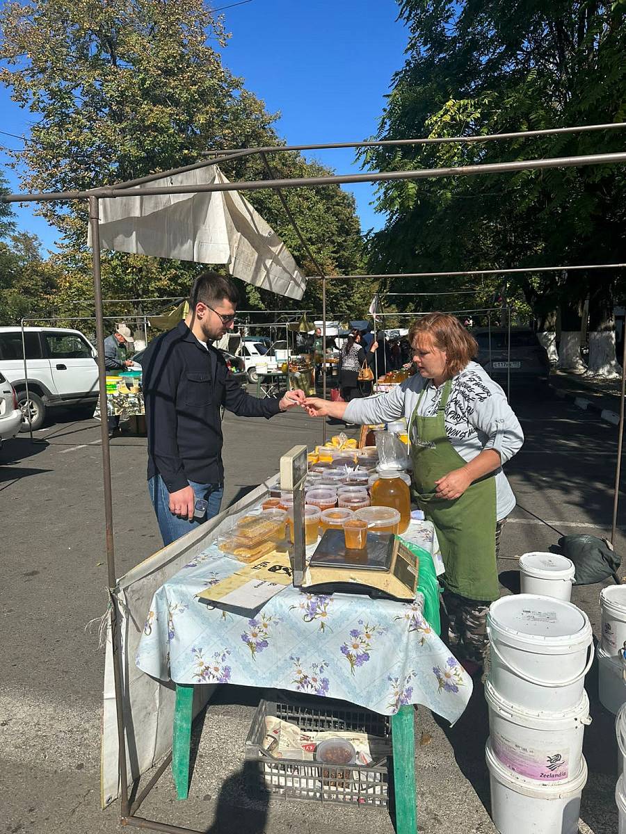 Председатель молодых депутатов Армавирской городской Думы, член депутатского объединения ВПП «Единая Россия» Борисов Вилорик Алексеевич в эти выходные посетил такую ярмарку на улице Кирова, с удовольствием прошелся по рядам по достоинству оценив разнообразие товара, отметил высокое качество всей продукции.