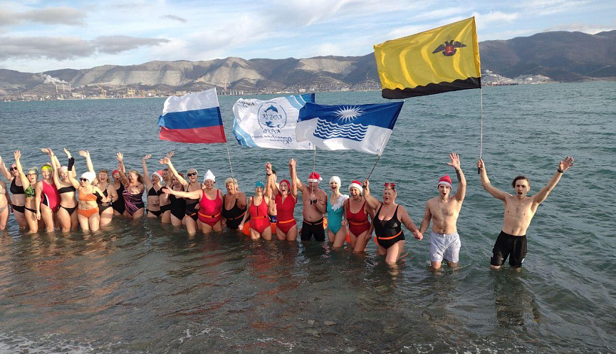 Моржи Новороссийска и Геленджика устроили массовый заплыв и танцы в ледяной воде