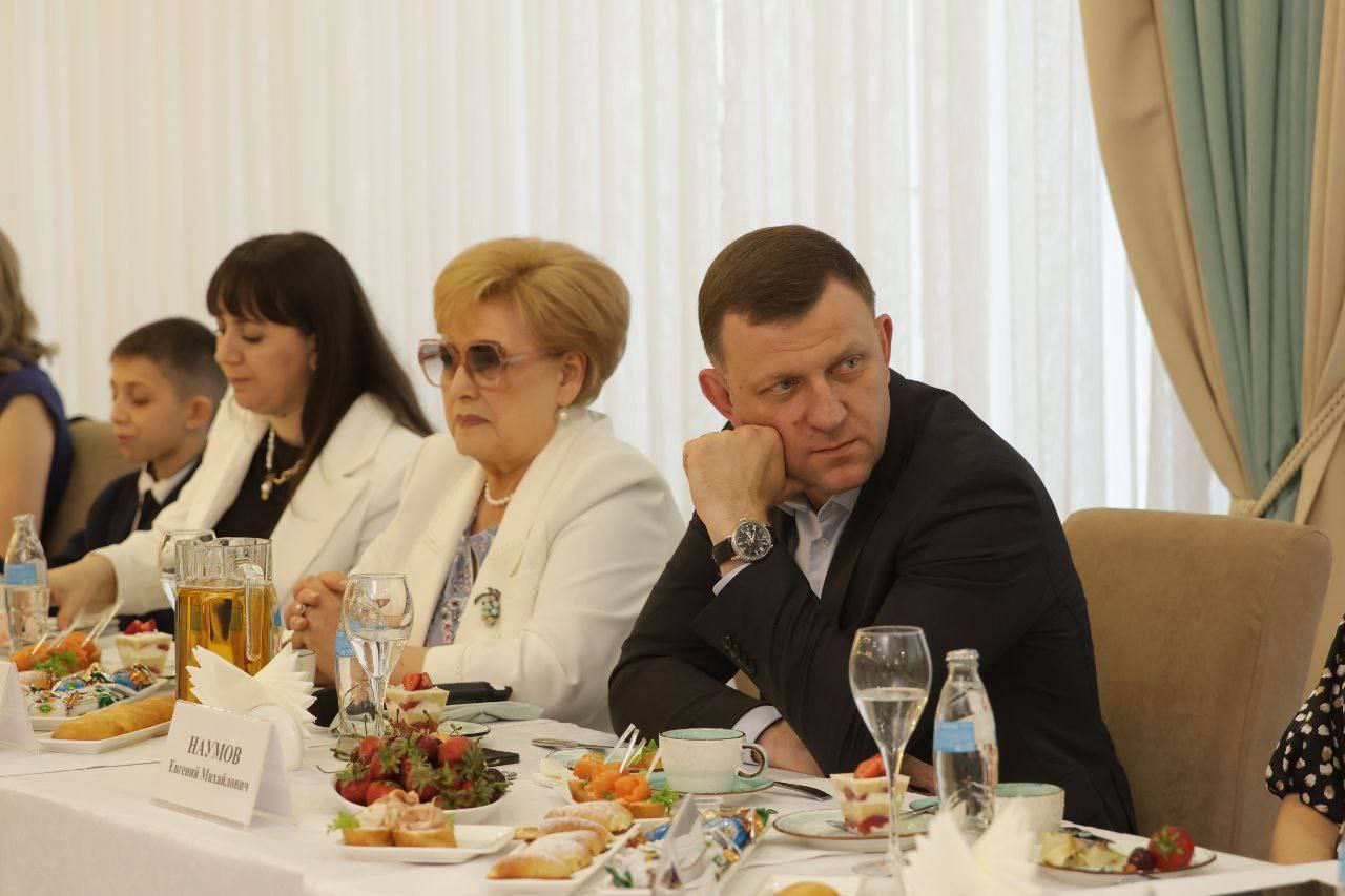 Глава кубанской столицы и председатель Гордумы пообщались с родными участников СВО, многодетными и приёмными семьями, а также воспитывающими детей, достигших больших успехов в образовании и спорте. Евгений Наумов отметил, что завтра в Краснодаре отметят сразу два праздника — День защиты детей и Всемирный день родителей, поэтому на встречу пришли родители вместе с детьми.