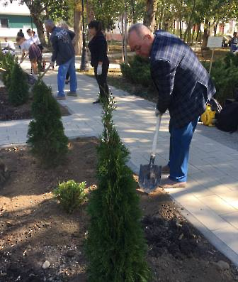 Парк, площадь, игровая или спортивная площадка - с этого дня санитарный порядок общественных пространств распределят между учебными учреждениями города. Сегодня Александр Абрамов подписал соответствующее распоряжение, а закрепил документ экологической акцией. Глава города, представители депутатского корпуса, руководство СОШ-68 и, непосредственно сами ученики заложили в сквере Железнодорожников можжевеловую аллею, увеличив зеленый фонд города на 33 изумрудных хвойника.
