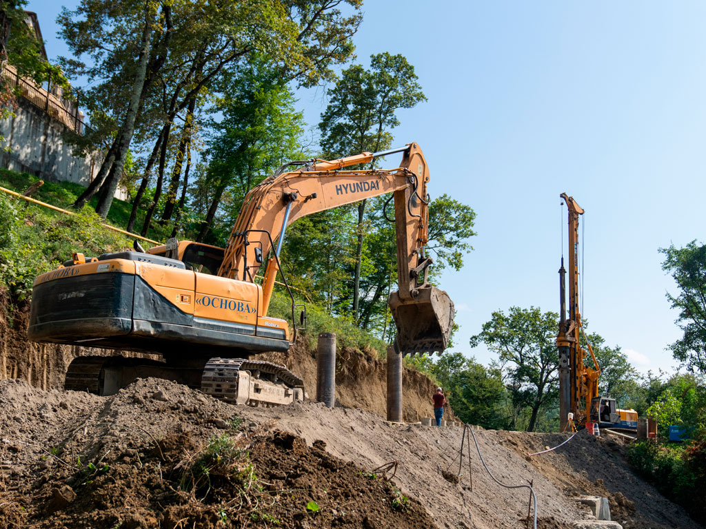 На аварийном участке создают две подпорные стены — протяженность инженерной защиты составит без малого 120 метров. К настоящему моменту забурена уже половина свай. Кроме того, специалисты оборудуют систему водоотведения. Весь комплекс работ планируют завершить до конца октября.
