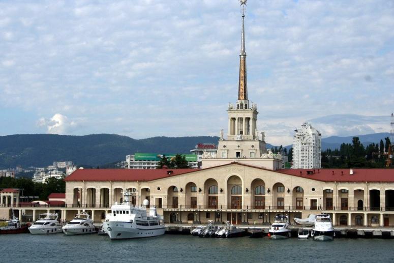 Морской порт Сочи — один из самых узнаваемых символов курорта. Здание было построено в 1955 году по проекту архитекторов Каро Алабяна, Леонида Карлика и инженера Александра Кузьмина. Трехъярусная башня здания морского порта усилена 36-метровым шпилем с пятиконечной звездой, на ней расположены смотровая площадка и скульптурный ансамбль — статуи, символизирующие стороны света и времена года.