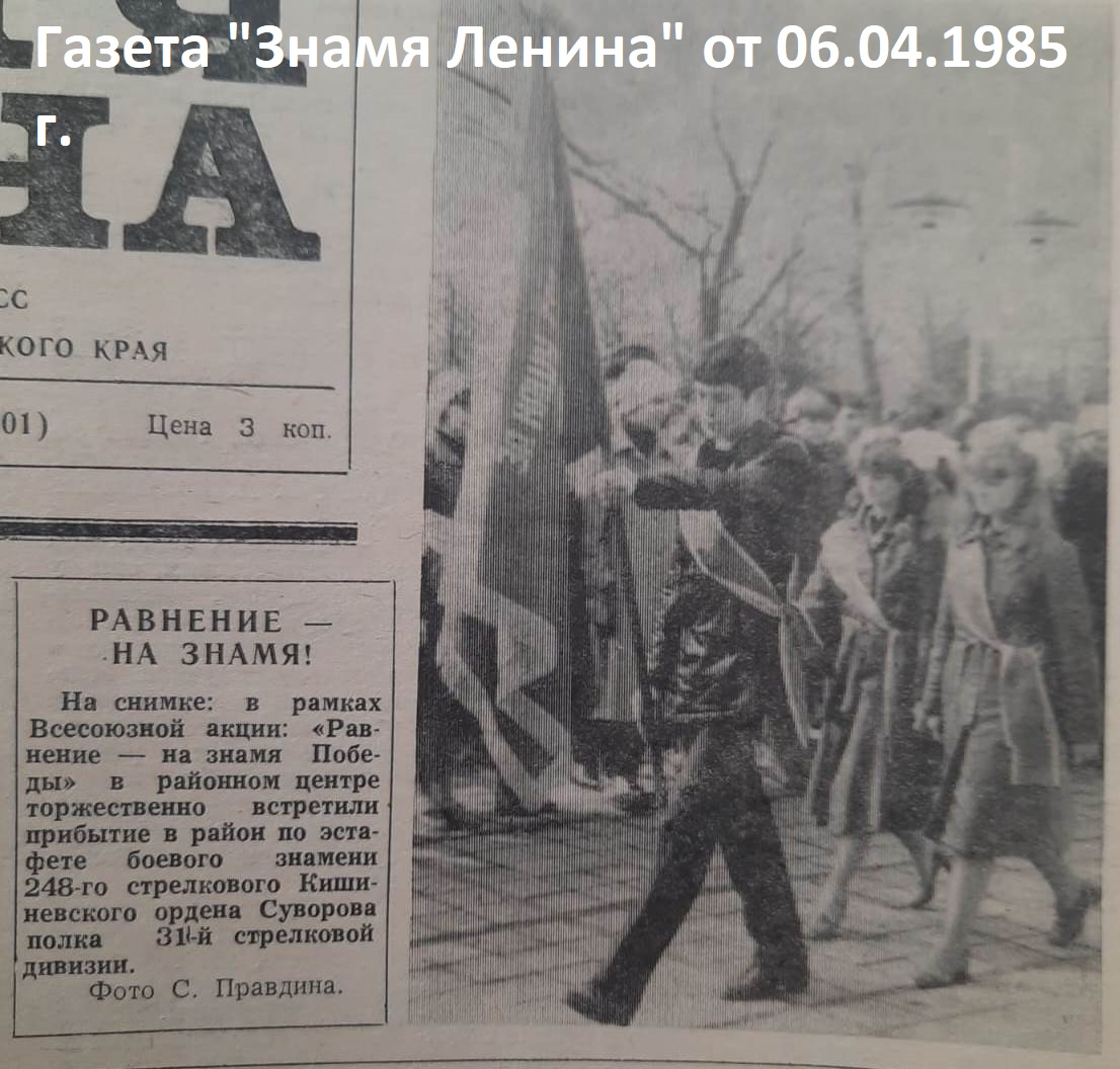 Восемь десятилетий наш народ хранит память о тех, кто завоевал Победу. В архивном отделе муниципального образования Щербиновский район имеются сведения о том, что акции по передаче эстафеты знамени проводятся в нашей стране традиционно.