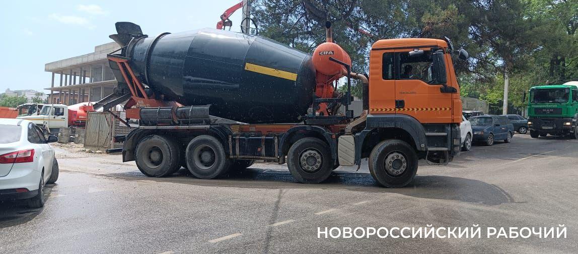 В центре Новороссийска бетоновозы парализовали движение и растащили грязь по дороге