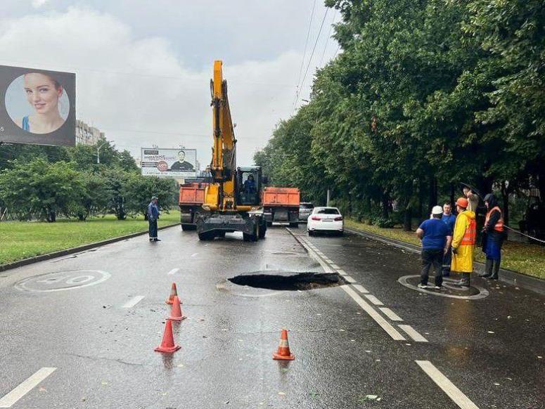 В Краснодаре из-за провалившейся дороги ограничили движение машин и изменили маршруты общественного транспорта на улице Тургенева