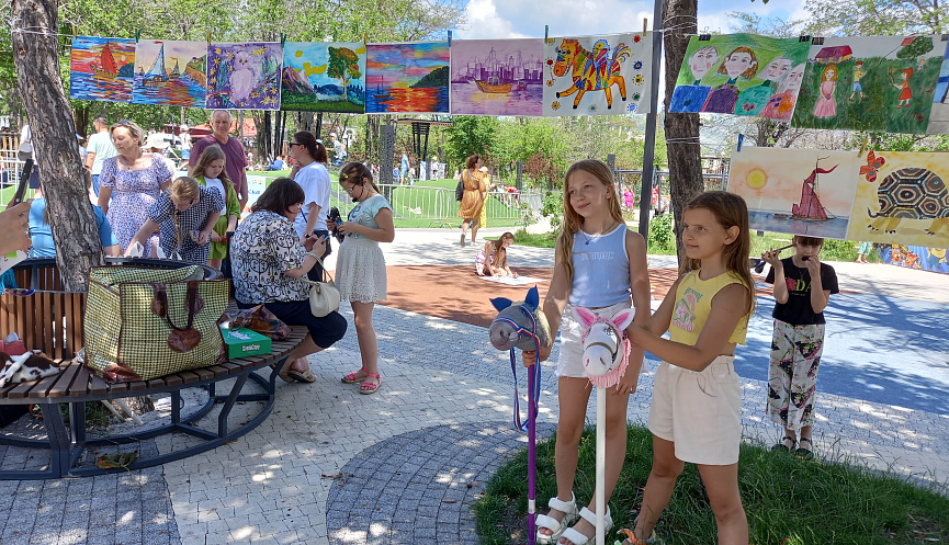 Каждый желающий ребёнок прямо на месте мог порисовать мелками и перенести в рисунки, то, что ему особенно дорого и интересно. Кроме этого аниматоры предлагали ребятам весёлые забавы, в частности, попробовать себя в модном хоббихорсинге – скачках на игрушечных конях.