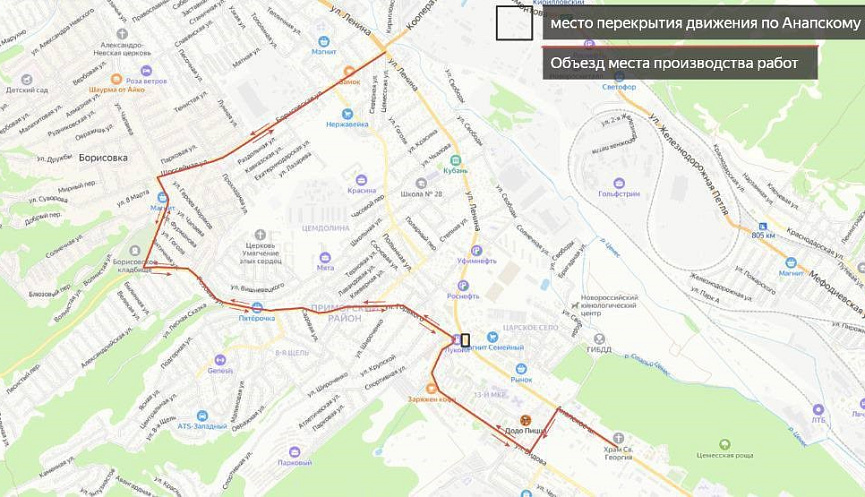 В связи с выполнением работ по переустройству теплотрассы, в ночь с 03 на 04 октября 2024 года, с 22:00 до 05:00, будет ограничено движение всех видов транспорта по Анапскому шоссе, в районе АЗС.