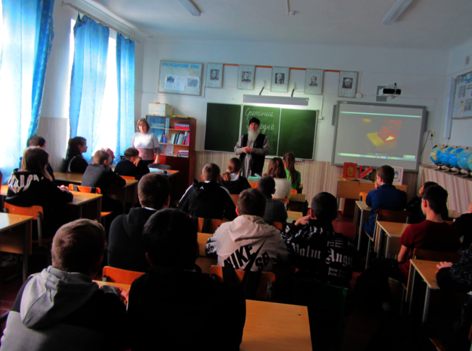 Настоятель прихода Рождества Богородицы провел духовно нравственную беседу в МБОУ СОШ №17 имени Героя Российской Федерации И.В.Ткаченко с. Отрадо-Ольгинского в 7-х классах на тему праздника «Сретение Господа Бога и Спаса нашего Иисуса Христа». Во время беседы учащиеся узнали историю происхождения этого православного праздника, и когда он стал праздноваться, а также его непреходящее значение для современного человечества. Дети узнали, что на церковнославянском языке слово «сретение» означает встречу — встречу Богочеловека со своим народом для того, чтобы дать людям нравственный закон примером своей жизни во человеческой плоти и, пострадав на Кресте, искупить людей из рабства дьявола, из рабства порокам и страстям, сделать их свободными и достойными носить Его образ и быть подобными Ему. «Будьте совершенны, как совершенен Отец ваш Небесный!» (Евангелие от Матфея гл. 5 ст. 47).