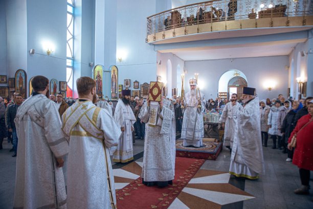 На сугубой ектении были возглашены особые прошения о восстановлении мира. Владыка вознес молитву о Святой Руси.