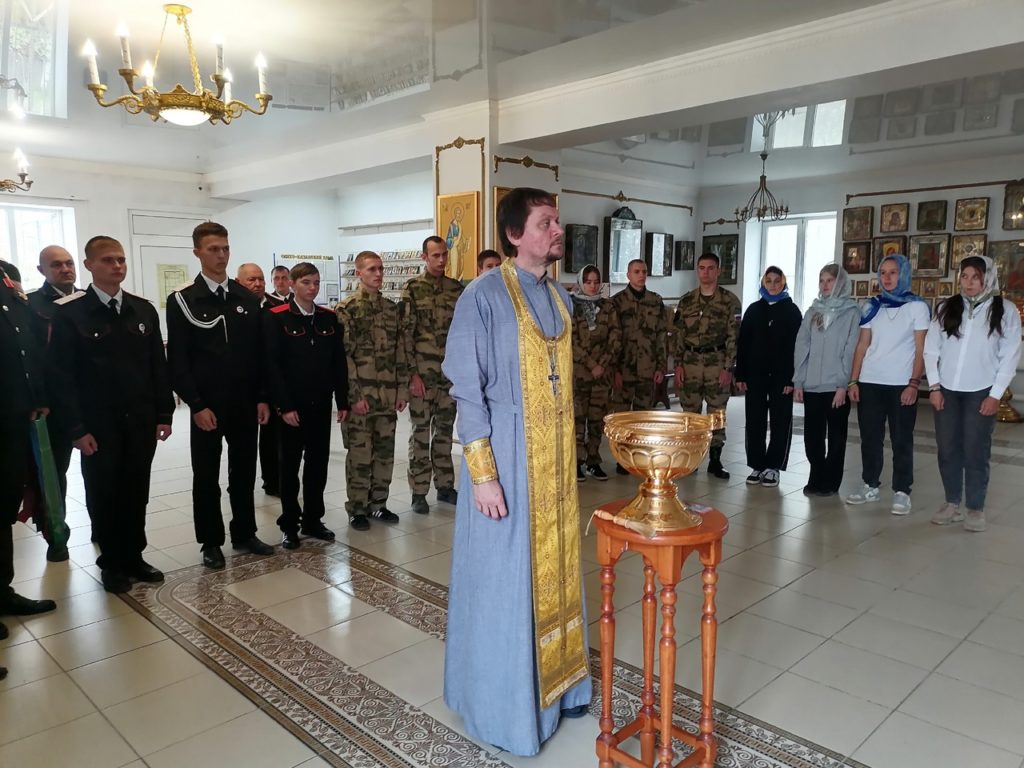 Настоятель иерей Антоний Гонтарюк провел молебен и благословил студентов, окропив их святой водой. В этот день молодые люди дали торжественное обещание верно отстаивать интересы своей Родины, казачества и православной веры.