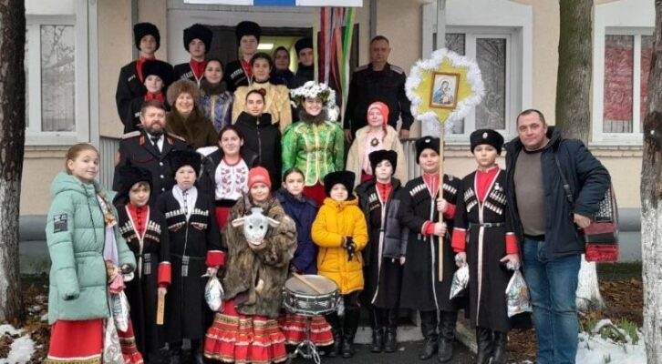 Сегодня поздравить казаков с прошедшим праздником Рождества Христова и с наступающим Крещением Господним в штаб Белореченского РКО пришли молодые казаки и казачки – солисты образцового фольклорного ансамбля «Кубанские голоса» (руководитель — заслуженный работник культуры Кубани Евгения Владимировна Герасимова, концертмейстер — Сергей Васильевич Рябцев).