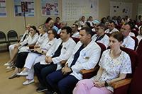 Приветствуя коллег, главный врач Роман Алексеевич Мурашко поблагодарил их за самоотверженный труд, отметив, что «тысячи людей нуждаются в квалифицированной помощи, добром слове, заботе. Вы вселяете в них надежду, возвращаете к жизни, принимаете на себя чужие страдания и отдаете частичку своего тепла. Здоровья и благополучия вам!»