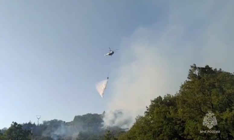 По данным на 17.30, в ГУ МЧС России оценили площадь лесного пожара в 1000 квадратных метров. Пожарный вертолет Ми-8 выполнил 4 сброса воды объемом 12 т.