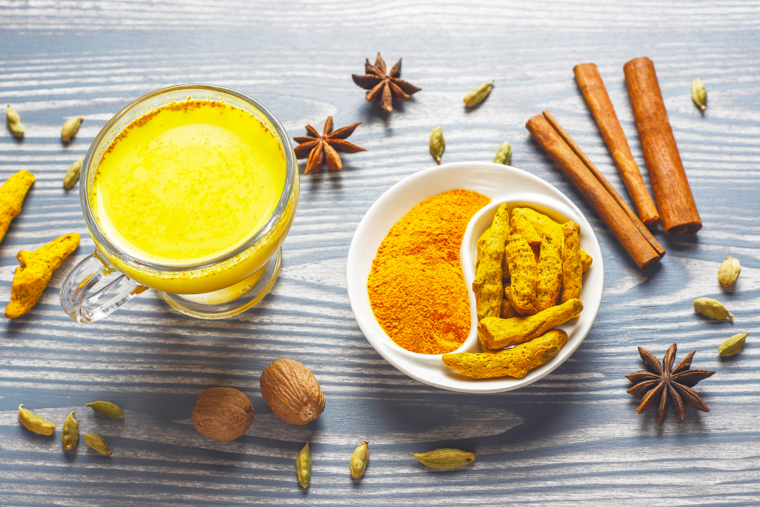 Куркума является источником, богатым на различные полезные элементы: кальций, йод, фосфор и витамины группы В . Поэтому напиток на ее основе, в дополнении с другими ингредиентами, обладает просто целебным действием.