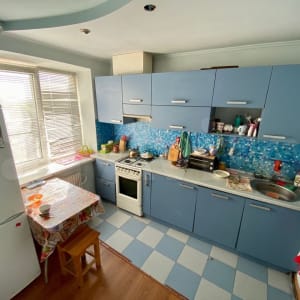 В квартире сделан ремонт, ламинат, плитка, подвесные потолки, встроенная мебель, которая останется новым жильцам.