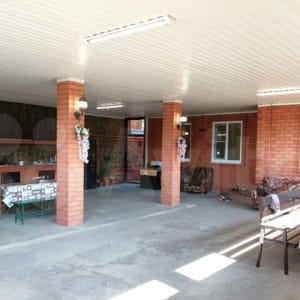 Перед домом большой навес 115 м2 с летней кухней и зоной отдыха!