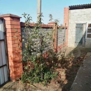Двoр забетонирoвaн, навеc, кирпичный зaбoр.